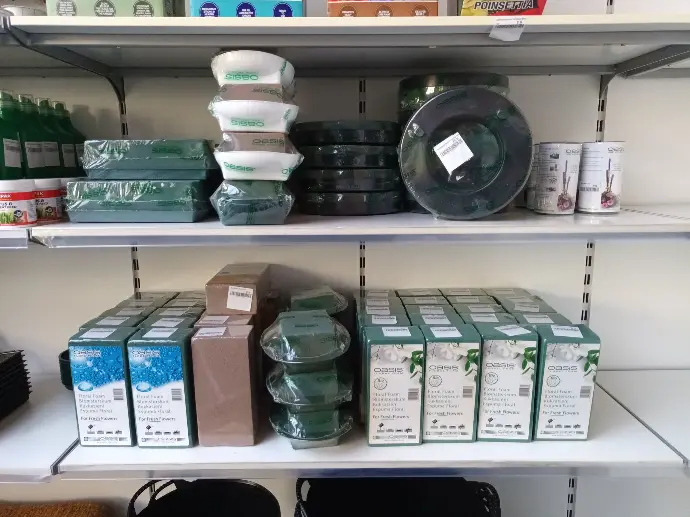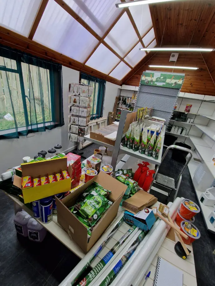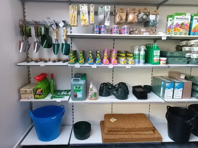 Along with gardening sundries and tools you will find house plants, spring bulbs, gardening gifts, flower arranging supplies, bird seed and greeting cards.